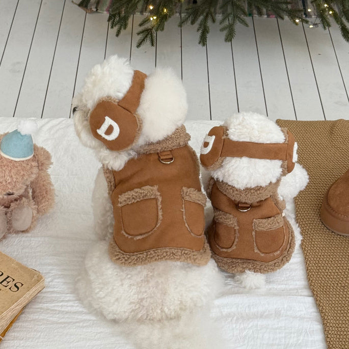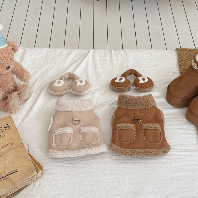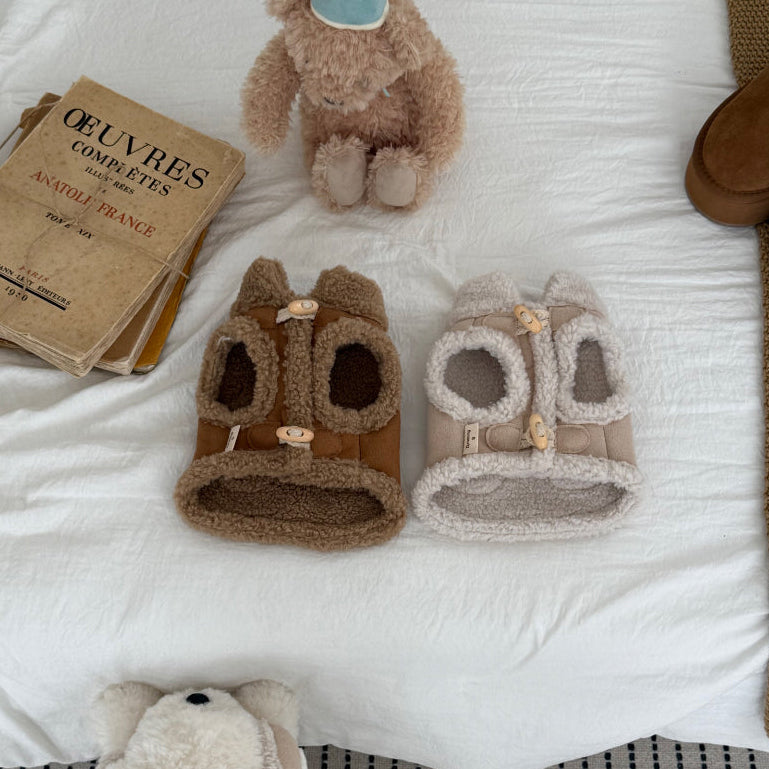 牛角鈕背心外套 | 毛毛領 | 可扣拖帶