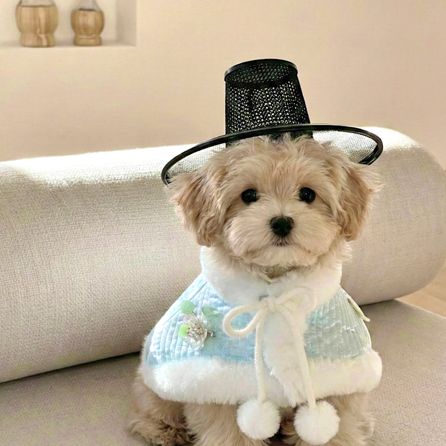 Add a touch of elegance to your pet's wardrobe with the Flower Hanbok Cape. This luxurious cape is perfect for Lunar New Year & Mid-Autumn Festival!