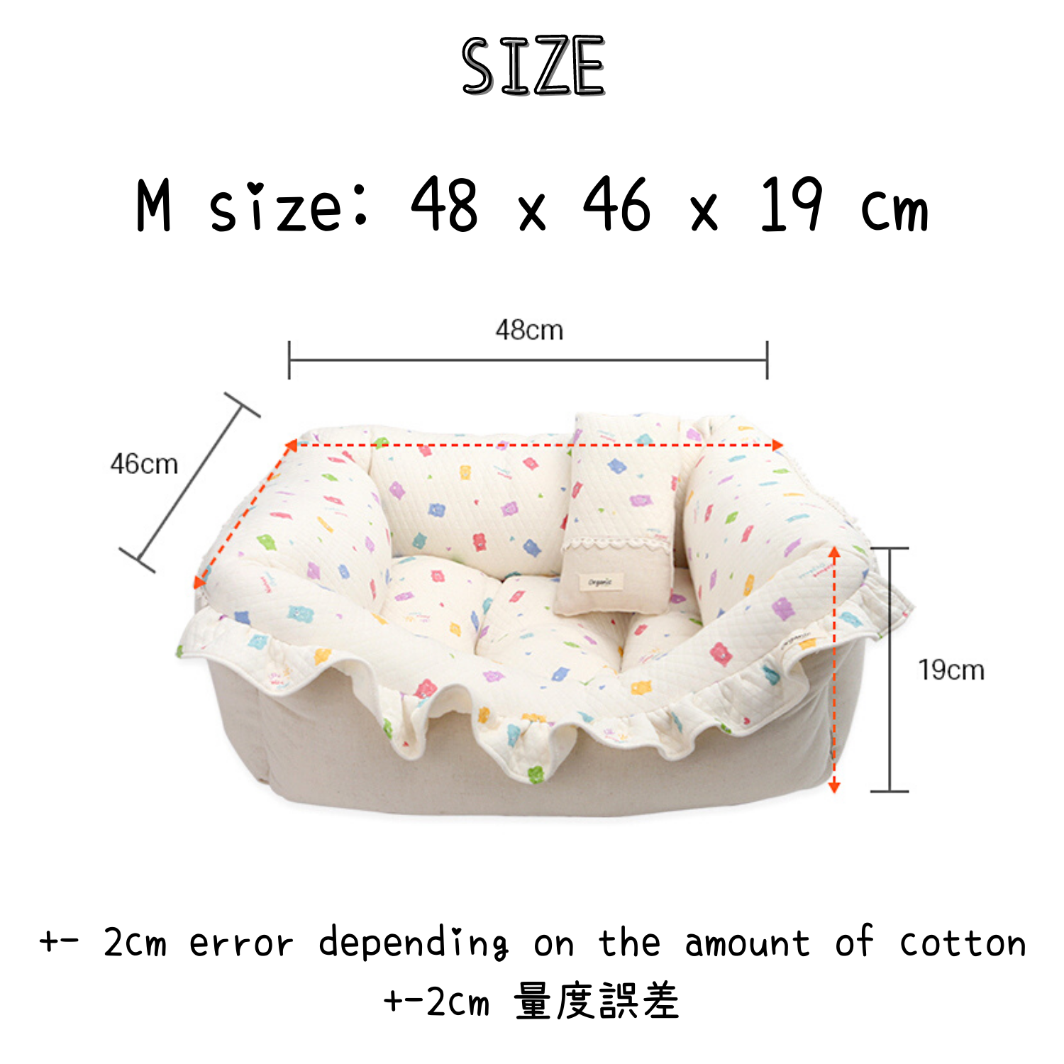 Measurement error +- 5cm depending on the amount of cotton. -