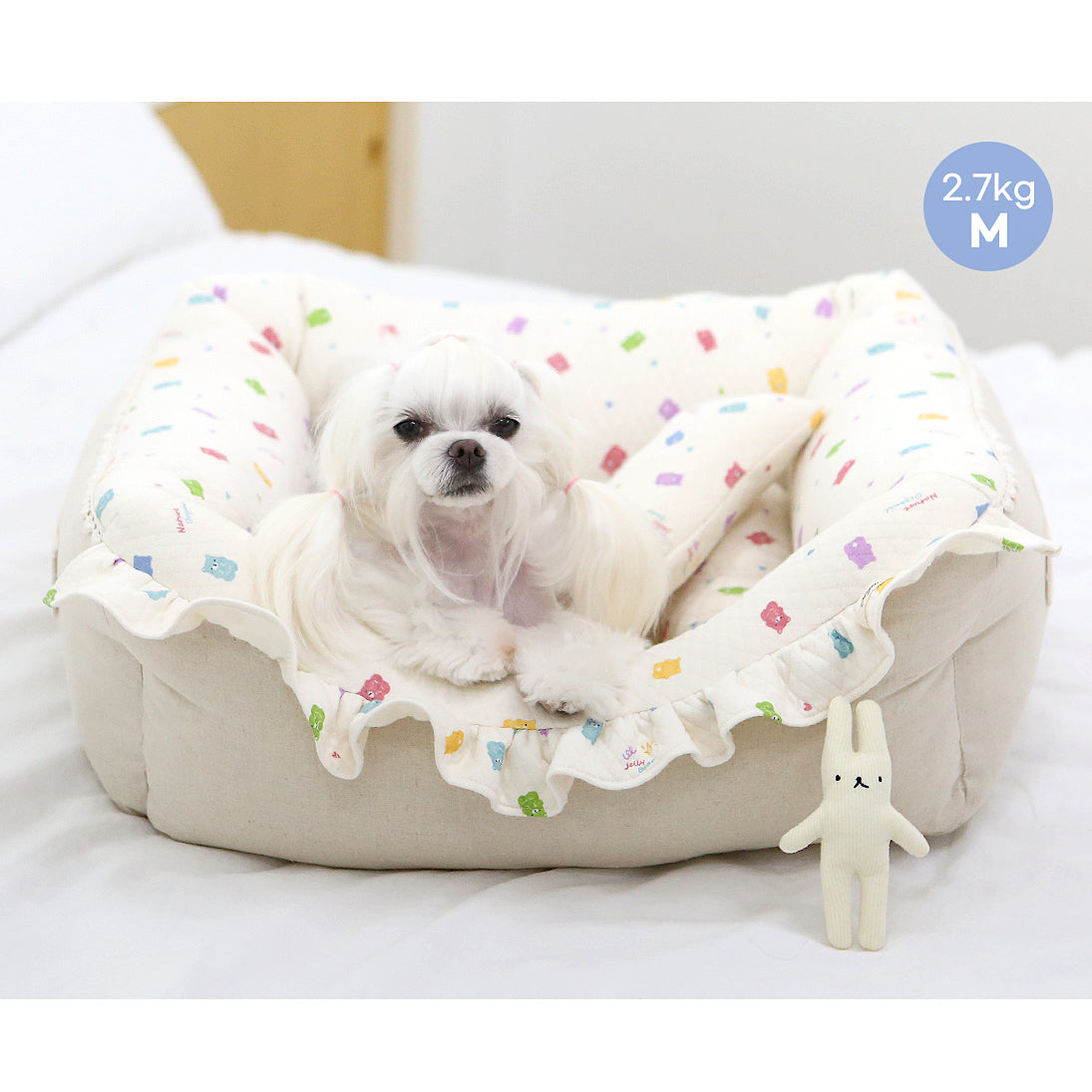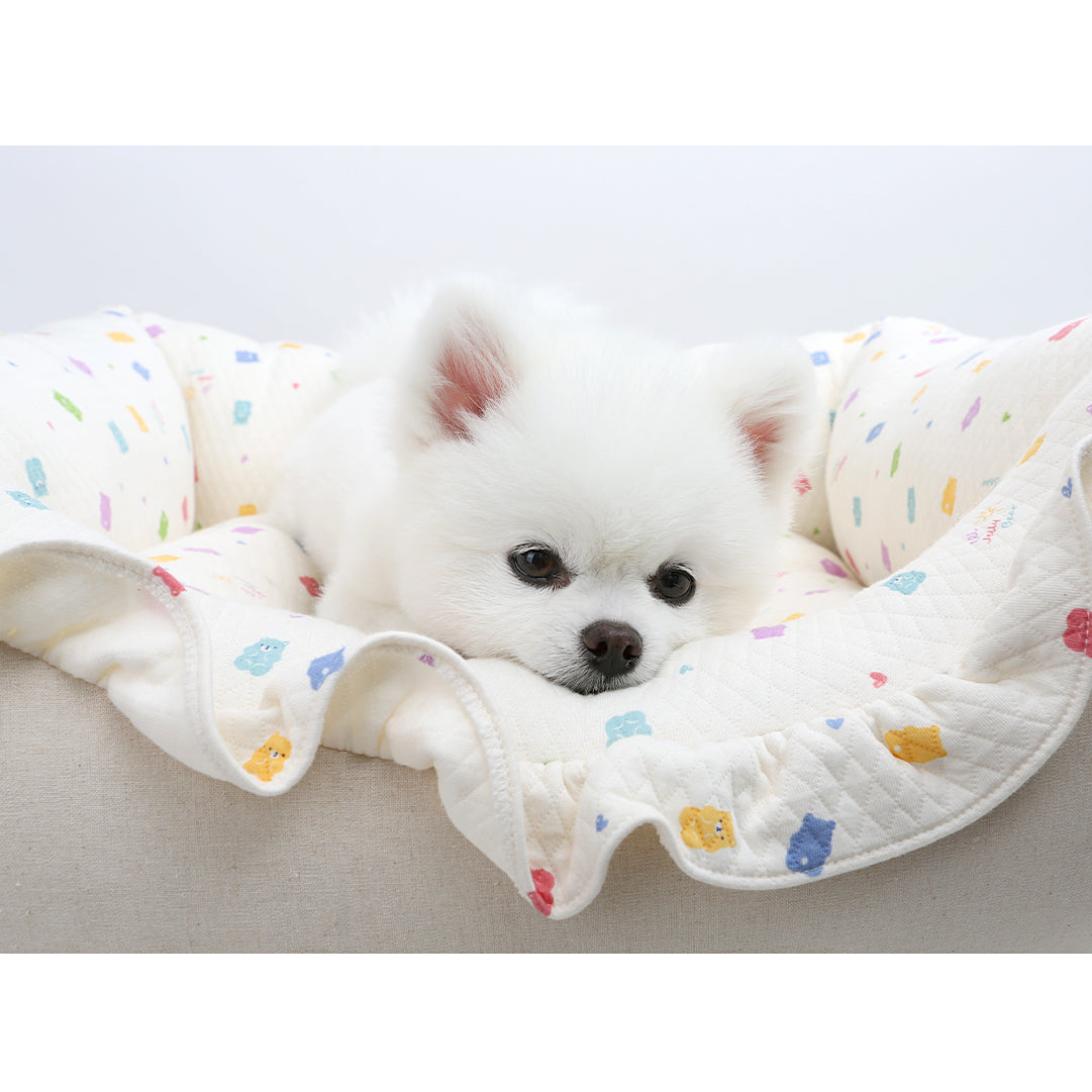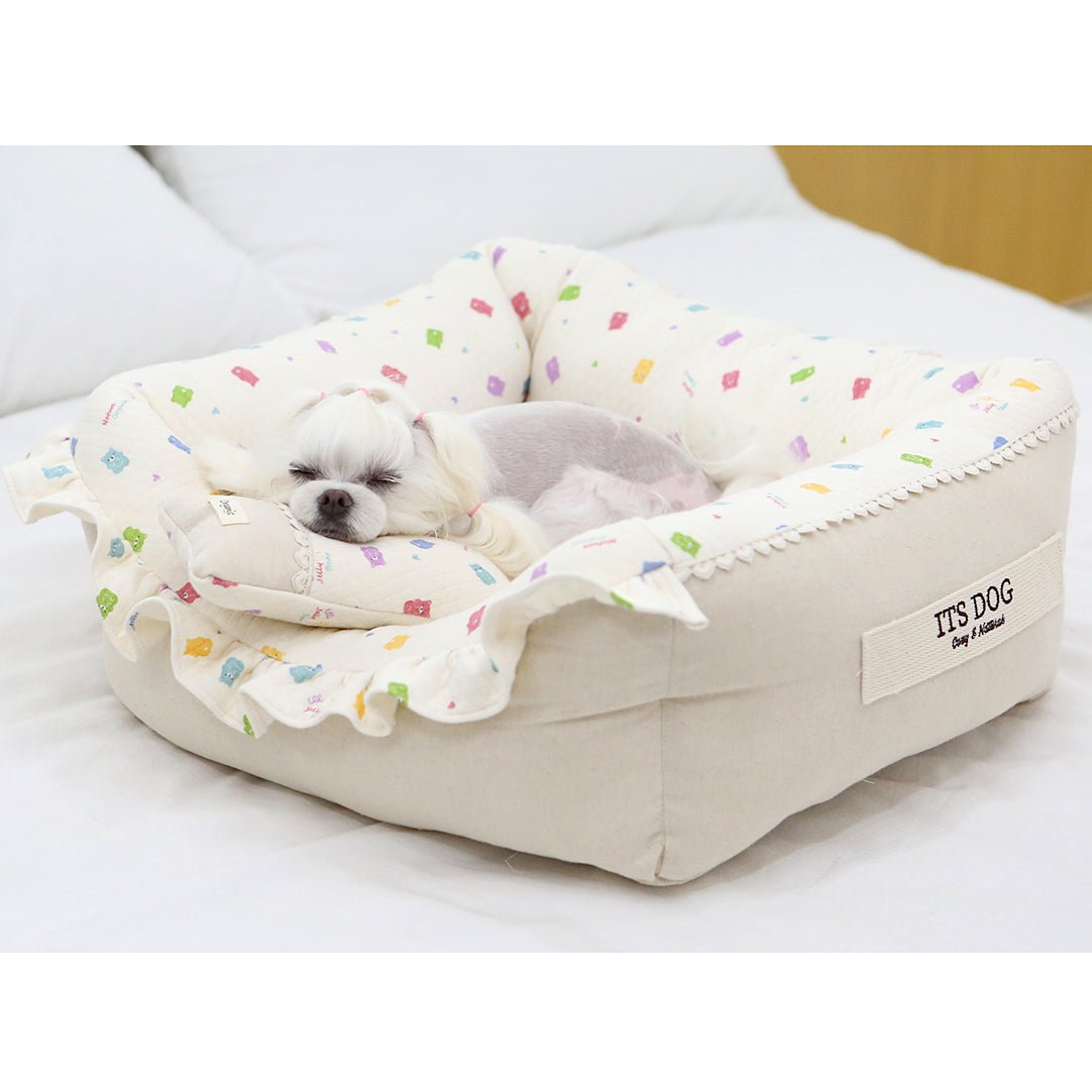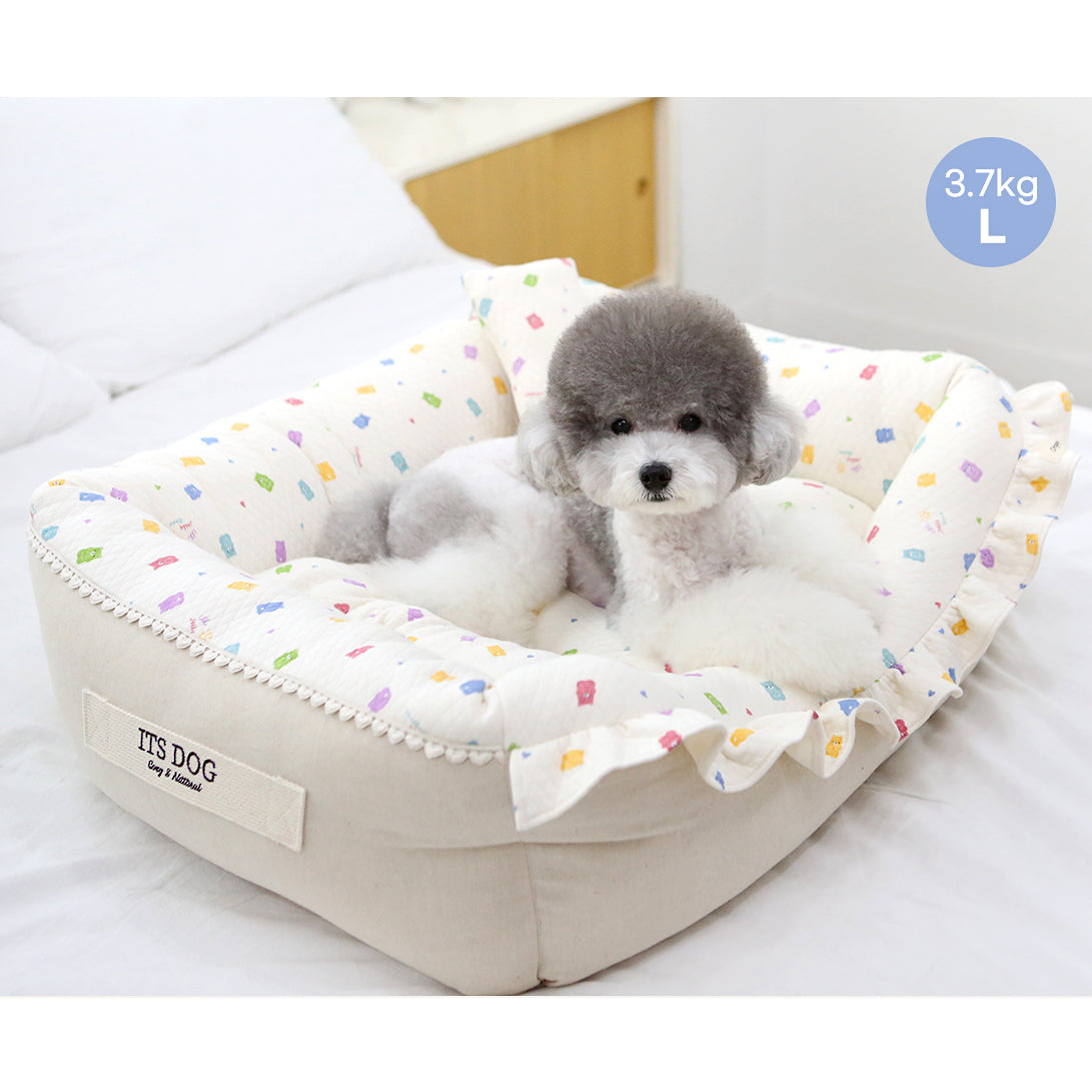 An ivory color bed with cute jelly bear print, which goes well with any interior design.